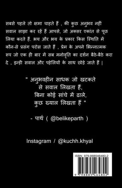 Patal is a poetic collection that tries to reveal different parts of life in different ways, trying to find a different aura of the same scene like many leaves of a tree, which seems to be successful. From "Kuch Khayal" only selected thoughts have been brought in front of you.