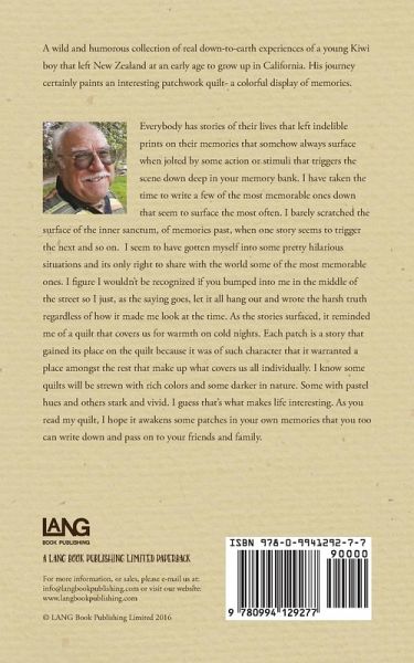 Life is like a patchwork quilt with each square telling a different story, but the entirety making a compilation of one's life. I have randomly selected different periods of my life that I found noteworthy and attempted to accumulate them into a fragment of my imagination. I have included stories from my childhood through adult and by no means exhausted the well that supplied them. The quilt will be complete when the stories end and that will be at my demise. We all have a quilt we're working on, whether we know it or not. What is displayed there may have bright colors and intricate stitching or dark overtones of black. We are the authors of our quilt and someday it will be revealed in its entirety to our glory or shame, which is the ultimate question. I hope you enjoy the few segments of my quilt I am sharing with you here.