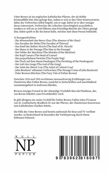 Zwischen 1910 und 1935 erschienen neunundvierzig Erzählungen von Chesterton über Father Brown, zunächst in Zeitschriften und anschließend zusammengefasst in mehreren Bänden.