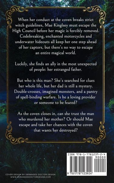 When her conduct at the coven breaks strict witch guidelines, Mae Kinglsey must escape the High Council Witch Coven before her magic is forcibly removed. Codebreaking, enchanted motorcycles and underwater hideouts all keep her one step ahead of her captors, but there's no way to escape an entire magical world. Luckily, she finds an ally in the most unexpected of people: her estranged father. But who is this man? She's searched for clues her whole life, but her dad is still a mystery. Double-crosses, imagined monsters, and a pantry of spell-binding warfare. Is he a loving provider or someone to be feared? As the coven closes in, can she trust the man who murdered her mother? Or should Mae escape and take her chances with the coven that wants her destroyed?