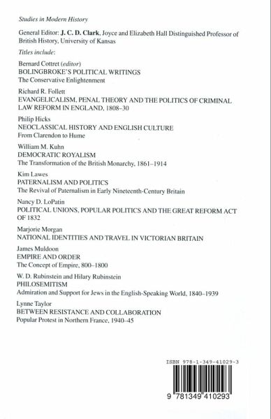Acknowledgements List of Abbreviations Introduction: Michael Thomas Sadler and 'The Revival of the Aristocratic Paternalist Ideal' Continuity and Change in the Revival of Paternalist Social Thought Sadler's Protectionist, Paternalist Social System and the Foundation of His Social Agenda Parliamentary Debate of Social Issues, c.1815-30: A Conflict between Liberal Utilitarianism and Aristocratic Paternalism The 'Sadlerian School': A Defence of Protectionist, Paternalist Ideals Ireland, Distress and Social Instability: Sadler Endeavours to Direct the Government 'To a Better Policy' Sadler's Ten Hours Bill and Leadership of the Parliamentary Factory-Reform Campaign Conclusion: Towards a Realization of the Paternalist, Collectivist Idea of the State Notes Index