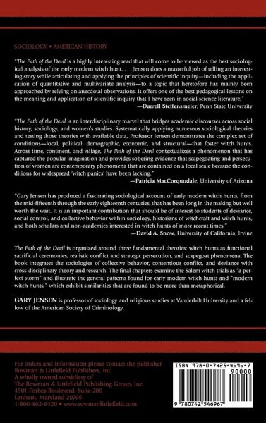Combining diverse sociological and philosophical theories, The Path of the Devil is a comparative analysis of the witch hunts of the early modern era. The author broadens his investigation through new quantitative analyses of the role of apocalyptic crises such as plague, war and other hardship.