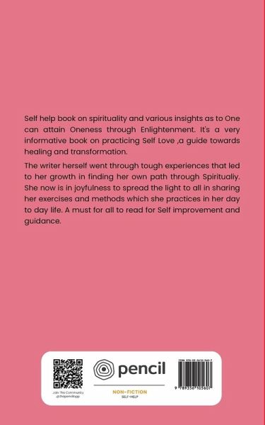 Self help book on spirituality and various insights as to One can attain Oneness through Enlightenment. It's a very informative book on practicing Self Love ,a guide towards healing and transformation. The writer herself went through tough experiences that led to her growth in finding her own path through Spiritualiy. She now is in joyfulness to spread the light to all in sharing her exercises and methods which she practices in her day to day life. A must for all to read for Self improvement and guidance.