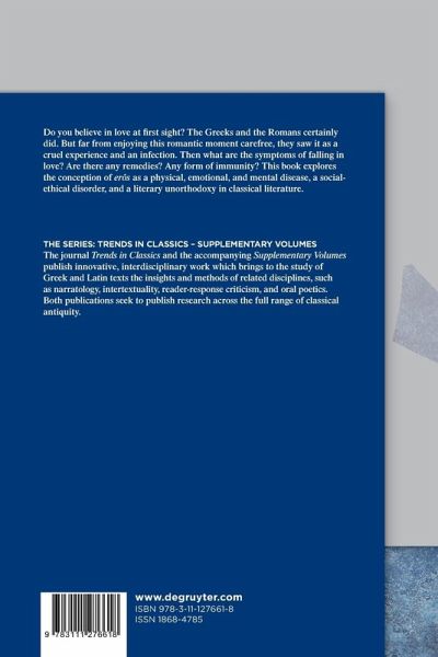 "This volume appears to have been, both literally and metaphorically, a 'labour of love'. [...] This is not a hastily thrown together collection of contributions: this is a careful, integrated and thought-provoking volume with common threads of interest and shared goals. [...] For the scholar, this book is fascinating and delightful. In keeping with the theme of the desirous gaze, it is a suitably handsome book to own, look at, admire, consult and read closely. It features several alluring colour illustrations from classical and modern art; immaculate quotations from Greek and Latin presented alongside English translations; a helpful anthology of ancient sources; an extensive bibliography; and an excellent index locorum and general index. What more could the scholar of erôs ask for?" Sonia Pertsinidis in: Classical Review 2022.