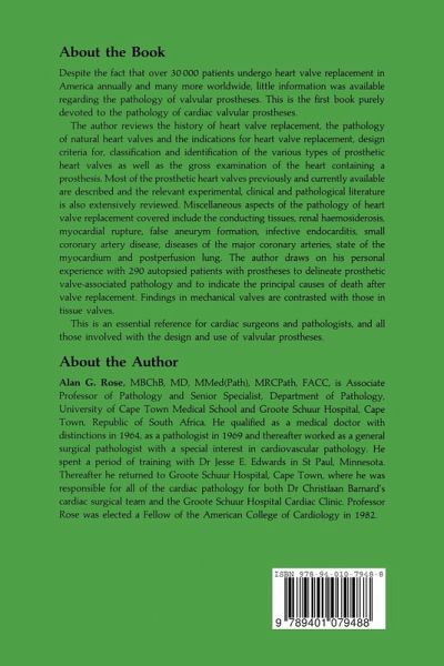 ` A textbook decribing th pathology of prosthetic valves was needed, and I recommend this one not only to pathologists, but also to clinicians. It certainly belongs on the individual teacher's bookshell. ' -- International Journal of Cardiology, 1988, Volume 18.