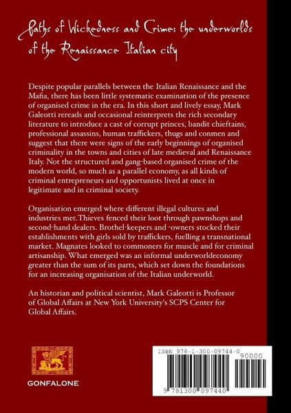 There were shadows to the Italian Renaissance. Just as art and philosophy were flourishing, so too were darker practices, from murder-for-hire to prostitution. However, despite popular parallels between families like the Borgia and the Medici and the Mafia, there has been little systematic examination of the presence of organised crime in the era. In this short and lively essay, Mark Galeotti rereads and occasionally reinterprets the rich secondary literature to introduce a cast of corrupt princes, bandit chieftains, professional assassins, human traffickers, thugs and conmen and suggest that there were signs of the early beginnings of organised criminality in the towns and cities of late medieval and Renaissance Italy. An historian and political scientist, Mark Galeotti is Professor of Global Affairs at New York University's SCPS Center for Global Affairs.