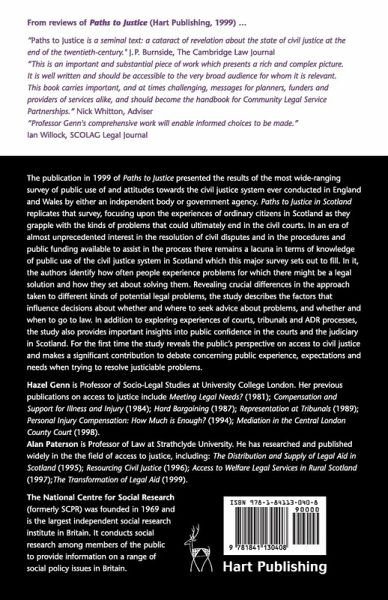he publication in 1999 of Paths to Justice presented the results of the most wide-ranging survey of public use of and attitudes towards the civil justice system ever conducted in England and Wales by either an independent body or government agency. Paths to Justice in Scotland replicates that survey,focusing upon the experiences of ordinary citizens in Scotland as they grapple with the kinds of problems that could ultimately end in the civil courts. In an era of almost unprecedented interest in the resolution of civil disputes and in the procedures and public funding available to assist in the process there remains a lacuna in terms of knowledge of public use of the civil justice system in Scotland which this major survey sets out to fill. In it, the authors identify how often people experience problems for which there might be a legal solution and how they set about solving them. Revealing crucial differences in the approach taken to different kinds of potential legal problems, the study describes the factors that influence decisions about whether and where to seek advice about problems, and whether and when to go to law. In addition to exploring experiences of courts, tribunals and ADR processes, the study also provides important insights into public confidence in the courts and the judiciary in Scotland. For the first time the study reveals the public's perspective on access to civil justice and makes a significant contribution to debate concerning public experience, expectations and needs when trying to resolve justiciable problems.