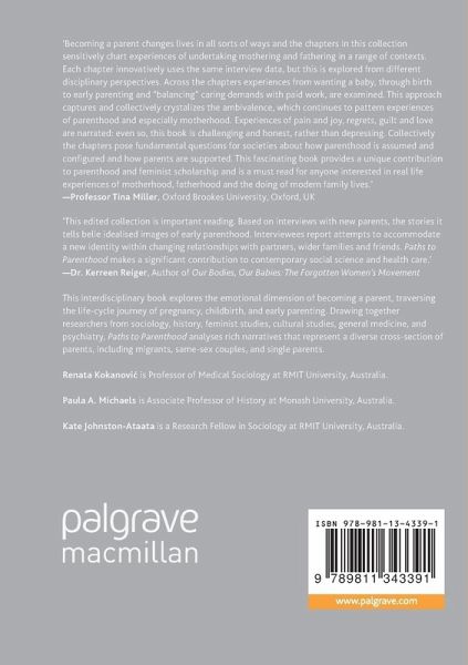 This interdisciplinary book explores the affective dimensions of becoming a parent, traversing the life-cycle journey of pregnancy, childbirth, and early parenting. Bringing together researchers from sociology, history, feminist studies, cultural studies, general medicine, and psychiatry, Paths to Parenthood analyses rich narratives that represent a diverse cross-section of parents, including migrants, same-sex couples, and single parents.