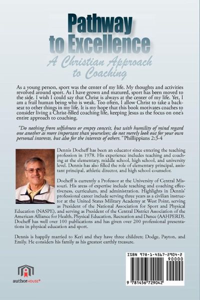 The purpose of this book is to provide athletic coaches with simple methods to enhance their coaching technique. Coaching is teaching. Therefore, coaches must look at their teaching effectiveness in order to become better coaches. In addition, the athletic arena provides a wonderful opportunity for a Christian witness. Often, coaches find it difficult to form a marriage between their coaching and a Christian lifestyle. This book intends to meld the two together, providing clear, effective teacher education and biblical advice to Christian coaches. The book also provides selected scriptures from God's Word. Can a Christian coach really make a difference? How can one Christian coach save the world of sport? Well, first there is more than one Christian coach out there. Second, if there was only one Christian coach willing to go to battle with Christ, they would fight and win. One coach plus Jesus equals a majority. Recall that it appeared as though David didn't stand a chance when he went to fight Goliath. David was not alone. David knew that God would be with him. Was he afraid? Maybe, but his faith in God was greater than his fear! Hopefully, this book motivates coaches to allow their faith in Christ to shine through their coaching style and behavior.