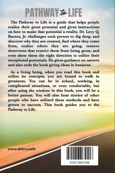 The Pathway to Life is a guide that helps people realize their great potential, and gives instructions on how to make that potential a reality. Dr. Levy Q. Barnes, Jr. challenges each person to dig deep, and discover why they are created, find where they come from, realize where they are going, remove deterrents that restrict them from being great, and even show them the right direction to utilize their exceptional potentials. He gives guidance on careers and also ends the book giving ideas in business along with the basic tools to open one. As a living being, when you read this book and utilize its concepts, you are bound to walk in greatness. You can be in school, working, in complicated situations, or even comfortable, but after using the wisdom in this book, you will be a better person. You will also hear stories of the other people who have utilized these methods and have grown to success. This book guides you to the Pathway of Life.