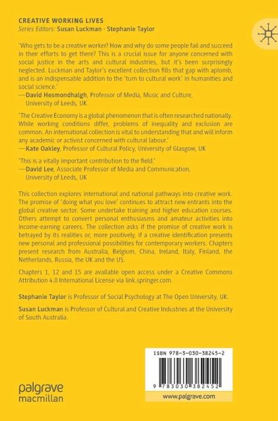 This book presents research on pathways into creative work. The promise of 'doing what you love' continues to attract new entrants to the cultural and creative industries. Is that promise betrayed by the realities of pathways into creative work, or does a creative identification offer new personal and professional possibilities in the precarious contexts of contemporary work and employment? Two decades into the 21st century, aspiring creative workers undertake training and higher education courses in increasing numbers. Some attempt to convert personal enthusiasms and amateur activities into income-earning careers. To manage the uncertainties of self-employment, workers may utilise skills developed in other occupations, even developing timely new forms of collective organisation. The collection explores the experience of creative career entrants in numerous national contexts, including Australia, Belgium, China, Ireland, Italy, Finland, the Netherlands, Russia, the US andthe UK. Chapters investigate the transitions of new workers and the obstacles they encounter on creative pathways.