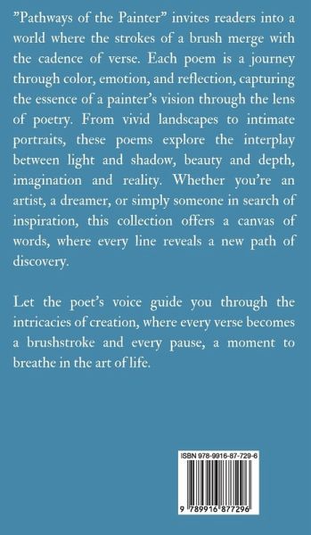 "Pathways of the Painter" invites readers into a world where the strokes of a brush merge with the cadence of verse. Each poem is a journey through color, emotion, and reflection, capturing the essence of a painter's vision through the lens of poetry. From vivid landscapes to intimate portraits, these poems explore the interplay between light and shadow, beauty and depth, imagination and reality. Whether you're an artist, a dreamer, or simply someone in search of inspiration, this collection offers a canvas of words, where every line reveals a new path of discovery. Let the poet's voice guide you through the intricacies of creation, where every verse becomes a brushstroke and every pause, a moment to breathe in the art of life. Copyright © 2024 Book Fairy Publishing