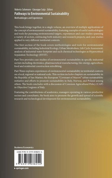This book brings together, in a single volume, an overview of multiple applications of the concept of environmental sustainability, featuring examples of useful methodologies and tools for pursuing environmental targets, experiences and case studies spanning a variety of sectors, embracing both industry and research projects; and case studies applied to very different territorial contexts.