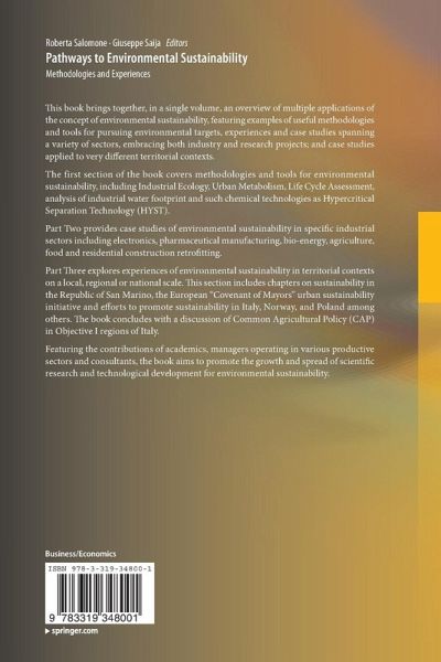 This book brings together, in a single volume, an overview of multiple applications of the concept of environmental sustainability, featuring examples of useful methodologies and tools for pursuing environmental targets, experiences and case studies spanning a variety of sectors, embracing both industry and research projects; and case studies applied to very different territorial contexts.