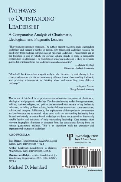 Contents: E.A. Fleishman J.N. Cleveland Series Foreword. Preface. Part I: Examining Distinct Pathways to Outstanding Leadership.M.D. Mumford J.M. Strange K.E. Bedell Introduction-Charismatic Ideological and Pragmatic Leaders: Are They Really Different? M.D. Mumford G. Scott S.T. Hunter Theory-Charismatic Ideological and Pragmatic Leaders: How Do They Lead Why Do They Lead and Who Do They Lead? M.D. Mumford B. Gaddis J.M. Strange G. Scott General Method-What History Remembers and Predicts for Outstanding Leaders. Part II: Behaviorally Distinct Pathways to Outstanding Leadership. M.D. Mumford J.M. Strange B. Gaddis B. Licuanan G. Scott Performance-Who Masters the Art of Influence? Charismatic Ideological or Pragmatic Leaders? M.D. Mumford K.E. Bedell S.T. Hunter J. Espejo P.R. Boatman Problem Solving-Turning Crises Into Opportunities: How Charismatic Ideological and Pragmatic Leaders Solve Problems. M.D. Mumford J.M. Strange G. Scott L. Dailey C. Blair Leader-Follower Interactions-Heroes Leaders and Tyrants: How Do They Relate? M.D. Mumford B. Gaddis B. Licuanan B. Ersland K. Siekel Communication Strategies-Persuasion or Logic: How Do Outstanding Leaders Connect With Their Followers? M.D. Mumford B. Licuanan R.T. Marcy L. Dailey C. Blair Political Tactics-Getting Ahead: How Charismatic Ideological and Pragmatic Leaders Use Influence Tactics. Part III: Early Distinct Pathways to Outstanding Leadership.M.D. Mumford G. Scott R.T. Marcy M.J. Tutt J. Espejo Development-What Early Life Experiences Prepare You for Outstanding Leadership? M.D. Mumford K.E. Bedell G. Scott Developmental Influences-What Kind of Leader Are You Destined to Be? M.D. Mumford J.M. Strange S.T. Hunter Conclusions-Charismatic Ideological and Pragmatic Leaders: Different Paths to Outstanding Performance. Appendix.