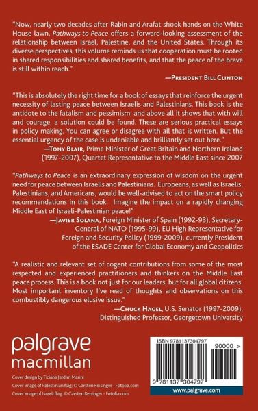 "Pathways to Peace is an extraordinary expression of wisdom on the urgent need for peace between Israelis and Palestinians. Europeans, as well as Israelis, Palestinians and Americans, would be well-advised to act on the smart policy recommendations in this book. Imagine the impact on a rapidly changing Middle East of Israeli-Palestinian peace!" - Javier Solana, Foreign Minister of Spain (1992-1995), Former Secretary-General of NATO (1995-1999),Former EU High Representative for Foreign and Security Policy (1999-2009), President of the ESADE Center for Global Economy and Geopolitics