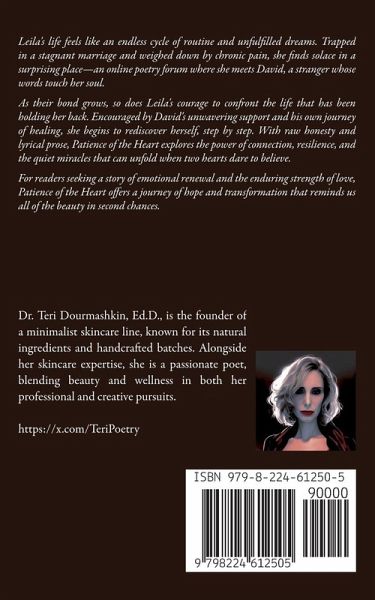 Leila's life feels like an endless cycle of routine and unfulfilled dreams. Trapped in a stagnant marriage and weighed down by chronic pain, she finds solace in a surprising place-an online poetry forum where she meets David, a stranger whose words touch her soul. As their bond grows, so does Leila's courage to confront the life that has been holding her back. Encouraged by David's unwavering support and his own journey of healing, she begins to rediscover herself, step by step. With raw honesty and lyrical prose, Patience of the Heart explores the power of connection, resilience, and the quiet miracles that can unfold when two hearts dare to believe. For readers seeking a story of emotional renewal and the enduring strength of love, Patience of the Heart offers a journey of hope and transformation that reminds us all of the beauty in second chances.