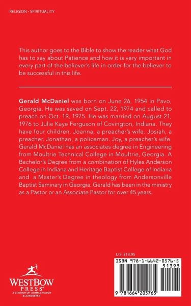This author goes to the Bible to show the reader what God has to say about Patience and how it is very important in every part of the believer's life in order for the believer to be successful in this life.