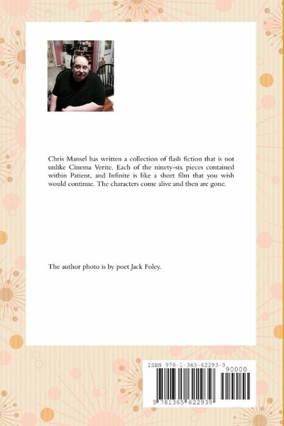 Chris Mansel has written a collection of Flash Fiction that is not unlike Cinema Verite. Each of the ninety-six pieces contained within Patient, and Infinite is like a short film that you wish would continue. Mansel is also the author of the novel While In Exile.