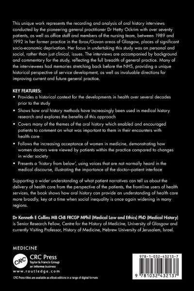 This unique work represents the recording and analysis of oral history interviews conducted by the pioneering general practitioner Dr Hetty Ockrim with over seventy patients, as well as office staff and members of the nursing team, between 1989 and 1992 in her former practice in the Ibrox/Govan areas of Glasgow.