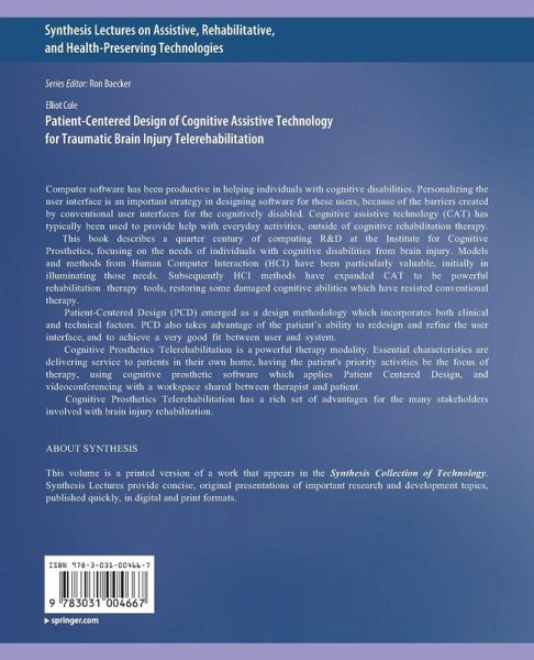 Computer software has been productive in helping individuals with cognitive disabilities. Personalizing the user interface is an important strategy in designing software for these users, because of the barriers created by conventional user interfaces for the cognitively disabled. Cognitive assistive technology (CAT) has typically been used to provide help with everyday activities, outside of cognitive rehabilitation therapy. This book describes a quarter century of computing R&D at the Institute for Cognitive Prosthetics, focusing on the needs of individuals with cognitive disabilities from brain injury. Models and methods from Human Computer Interaction (HCI) have been particularly valuable, initially in illuminating those needs. Subsequently HCI methods have expanded CAT to be powerful rehabilitation therapy tools, restoring some damaged cognitive abilities which have resisted conventional therapy. Patient-Centered Design (PCD) emerged as a design methodology which incorporatesboth clinical and technical factors. PCD also takes advantage of the patient's ability to redesign and refine the user interface, and to achieve a very good fit between user and system. Cognitive Prosthetics Telerehabilitation is a powerful therapy modality. Essential characteristics are delivering service to patients in their own home, having the patient's priority activities be the focus of therapy, using cognitive prosthetic software which applies Patient Centered Design, and videoconferencing with a workspace shared between therapist and patient. Cognitive Prosthetics Telerehabilitation has a rich set of advantages for the many stakeholders involved with brain injury rehabilitation.