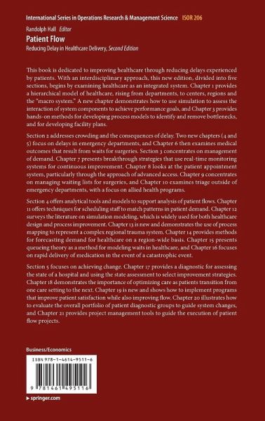This book is dedicated to improving healthcare through reducing delays experienced by patients. With an interdisciplinary approach, this new edition, divided into five sections, begins by examining healthcare as an integrated system. Chapter 1 provides a hierarchical model of healthcare, rising from departments, to centers, regions and the "macro system." A new chapter demonstrates how to use simulation to assess the interaction of system components to achieve performance goals, and Chapter 3 provides hands-on methods for developing process models to identify and remove bottlenecks, and for developing facility plans.