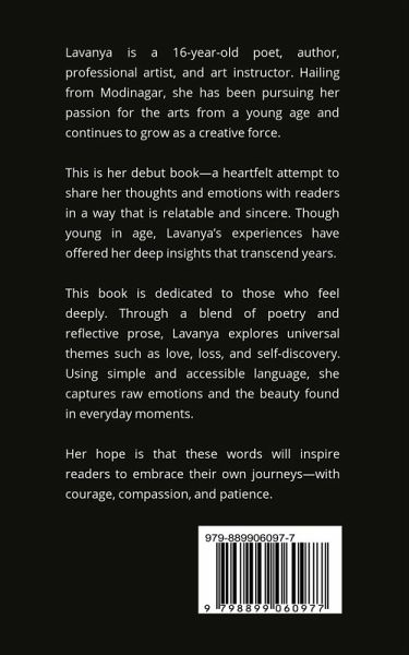 Patient of Patience is not just a collection of words - it's a reflection of emotions that often go unheard and thoughts that echo in silence. Through a blend of poetry and prose, this book explores themes of love, loss, healing, self-discovery, and the quiet power of patience. Every poem is a glimpse into the human heart - its strength, its pain, its dreams, and its resilience. Written in simple yet impactful language, the verses are deeply personal, yet universally relatable. They speak to anyone who has ever felt too much and said too little. This debut collection by a young poet captures raw emotions with maturity beyond her years. It invites readers to pause, reflect, and connect with the deeper layers of their feelings. Whether you are here to find comfort, clarity, or courage, "Patient of Patience" offers a space where silence finds its voice - and the heart finds its way