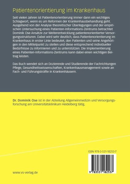 Seit vielen Jahren ist Patientenorientierung immer dann ein wichtiges Schlagwort, wenn es um Reformen der Krankenhausbehandlung geht. Ausgehend von der Analyse theoretischer Überlegungen und der empirischen Untersuchung eines Patienten-Informations-Zentrums betrachtet Dominik Ose Ansätze zur Weiterentwicklung patientenorientierter Versorgungsstrukturen. Dabei wird sehr deutlich, dass Patientenorientierung im Krankenhaus in erster Linie bedeutet, den Patienten und seine Angehörigen