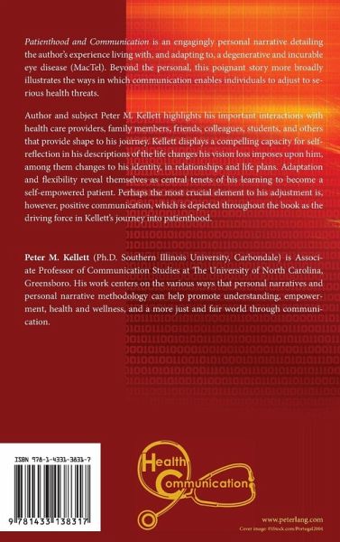 Patienthood and Communication is an engagingly personal narrative detailing the author's experience living with, and adapting to, a degenerative and incurable eye disease (MacTel). Beyond the personal, this poignant story more broadly illustrates the ways in which communication enables individuals to adjust to serious health threats.