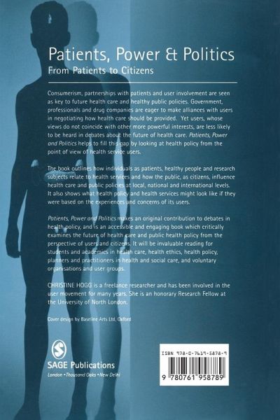 `The author presents a plethora of infomation on users as individuals, their communities, research, healthcare markets and health service myths - old and new. It's a cool academic appraisal of where the power lies and how more might be shared with the patient' - Health Service Journal `Anything that helps us to understand the complexities of healthcare provision and what issues are important to users is therefore helpful. I welcome Christine Hogg's excellent summary of the issues raised by users about healthcare services. It clearly informs readers of the debates that need to take place and of the issues that healthcare practitioners should address in order to better serve their users.... So read the book to gain a better understanding of some of the issues that users feel strongly about' - British Medical Journal Making an original contribution to debates on health policy, this accessible and engaging book critically examines the future of health care and public health policy from the perspective of users and citizens. Consumerism, partnerships with patients and user involvement are seen as key to future health care and healthy public policies. The book outlines how individuals as patients, healthy people and research subjects relate to health services and how the public, as citizens, influence health care and public policies at local, national and international levels.