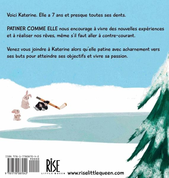 Voici Katerine. Elle a 7 ans et presque toutes ses dents. PATINER COMME ELLE nous encourage à vivre des nouvelles expériences et à réaliser nos rêves, même s'il faut aller à contre-courant. Venez vous joindre à Katerine alors qu'elle patine avec acharnement vers ses buts pour atteindre ses objectifs et vivre sa passion.