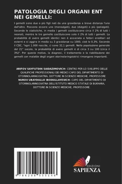 I gemelli sono due o più figli nati da una gravidanza a breve distanza l'uno dall'altro. Possono essere uno (monozigoti), due (dizigoti) o più (polizigoti). Secondo le statistiche, in media i gemelli costituiscono circa il 2% di tutti i neonati, mentre le tre gemelle costituiscono solo il 2% di tutti i gemelli. La probabilità di avere gemelli identici non è associata a fattori ereditari ed esterni e si aggira in media su 3 gravidanze su 1000, cioè lo 0,3%. Secondo il CDC, "ogni 1.000 nascite, ci sono 32,1 gemelli. Nella popolazione generale del 21° secolo, la probabilità di avere gemelli è di circa 3 su 100 (circa il 3%)". Per questo motivo, la diagnosi, il trattamento e la riabilitazione dei gemelli con malattie degli organi otorinolaringoiatrici rimangono importanti.