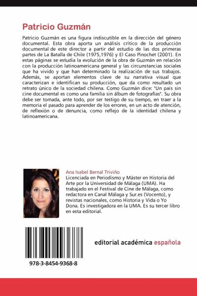 Patricio Guzmán es una figura indiscutible en la dirección del género documental. Esta obra aporta un análisis crítico de la producción documental de este director a partir del estudio de las dos primeras partes de La Batalla de Chile (1975,1976) y El Caso Pinochet (2001). En estas páginas se estudia la evolución de la obra de Guzmán en relación con la producción latinoamericana general y las circunstancias sociales que ha vivido y que han determinado la realización de sus trabajos. Además, se aportan elementos clave de su narrativa visual que caracterizan e identifican su producción, que da como resultado un retrato único de la sociedad chilena. Como Guzmán dice: "Un país sin cine documental es como una familia sin álbum de fotografías". Su obra debe ser tomada, ante todo, por ser testigo de su tiempo, en traer a la memoria el pasado para aprender de los errores, en un acto de atención, de reflexión o de denuncia, como reflejo de la identidad chilena y latinoamericana.