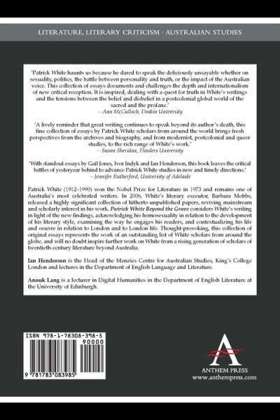 Carrying forward the momentum of the twenty-first-century 'rediscovery' of Patrick White (1912-1990), winner of the 1973 Nobel Prize for Literature, this book features work by White scholars aiming to stimulate future research into 'world' modernism, queer literature, and the 'jittery' modernist impulses of contemporary culture.