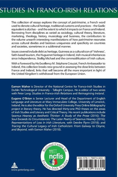 This collection of essays explores the concept of patrimoine, a French word used to denote cultural heritage, traditional customs and practices - the Gaelic equivalent is dúchas - and the extent to which it impacts on France and Ireland. Borrowing from disciplines as varied as sociology, cultural theory, literature, marketing, theology, history, musicology and business, the contributors to the volume unearth interesting manifestations of how patrimoine resonates across cultural divides and bestows uniqueness and specificity on countries and societies, sometimes in a subliminal manner.