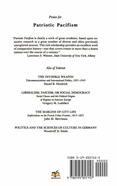 Peace movements became a part of the national landscapes of British, American, and European politics in the nineteenth century, reaching their peak during the European arms race of 1889-1914. This study examines the history of European peace movements from the end of the Napoleonic wars to the beginning of the First World War, analysing their methods and influence, and examining their ideological underpinnings and internal conflicts.