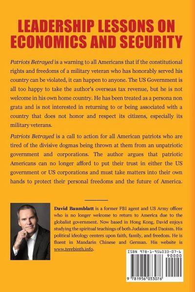 In Patriots Betrayed: A Soldier, Scholar, Spy's Warning about America's Leadership Crisis, a West Point graduate and former FBI Special Agent, who is currently under an unconstitutional investigation by the corrupt FBI, exposes the corruption and collusion between the American government and American corporations, and how their globalist agenda is undermining the freedoms of the American people and the country itself. Having lived in China for over a decade, the author has seen firsthand how American corporations value China over America and how they dismiss the American people, selling their products and services to the highest bidder regardless of whether these economic transactions are in the best interest of the American people. Patriots Betrayed is a battle cry for American patriots who value their personal freedoms. Baumblatt has presented his grievances against the US government and has been ignored. He has been detained, searched, humiliated, interrogated, surveilled, deceived, and assaulted by the US government and has been designated an enemy of the state. This attack on his honor has propelled him to take this fight to the American people through this book. Patriots Betrayed is a call to action for all American patriots who are tired of the divisive dogmas being thrown at them from an unpatriotic government and corporations. The author argues that patriotic Americans can no longer afford to put their trust in either the US government or US corporations and must take matters into their own hands to protect their personal freedoms and the future of America.