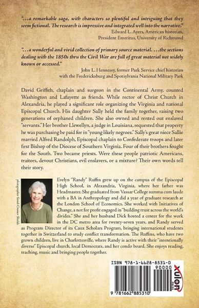 David Griffith, chaplain and surgeon in the Continental Army, counted Washington and Lafayette as friends. While rector of Christ Church in Alexandria, he played a significant role organizing the Virginia and national Episcopal Church. His daughter Sally held the family together, raising two generations of orphaned children. She also owned and rented out enslaved "servants." Her brother Llewellyn, a judge in Louisiana, requested that property he was purchasing be paid for in "young likely negroes." Sally's great niece Sallie married Alfred Randolph, Episcopal chaplain to Confederate troops and later first Bishop of the Diocese of Southern Virginia. Four of their brothers fought for the South. Two became priests. Were these people patriotic Americans, traitors, devout Christians, evil enslavers, or a mixture? Their own words tell their story.