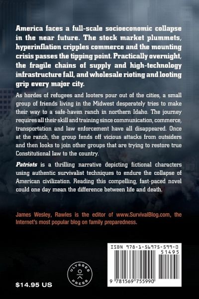 America faces a full-scale socioeconomic collapse--the stock market plummets, commerce is crippled and the mounting crisis passes the tipping point--in this thrilling novel with more than 250,000 copies in print. Practically overnight, the fragile chains of supply and high-technology infrastructure fall, and wholesale rioting and looting grip every major city. As hordes of refugees and looters pour out of the cities, a small group of friends living in the Midwest desperately tries to make their way to a safe-haven ranch in northern Idaho. The journey requires all their skill and training since communication, commerce, transportation and law enforcement have all disappeared. Once at the ranch, the group fends off vicious attacks from outsiders and then looks to join other groups that are trying to restore true Constitutional law to the country. Patriots is a thrilling narrative depicting fictional characters using authentic survivalist techniques to endure the collapse of the American civilization. Reading this compelling, fast-paced novel could one day mean the difference between life and death.
