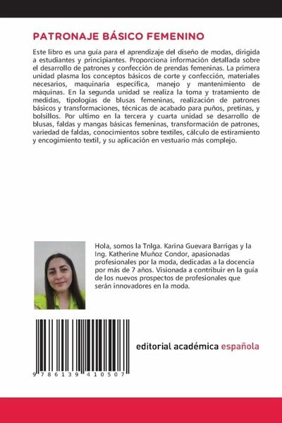 Este libro es una guía para el aprendizaje del diseño de modas, dirigida a estudiantes y principiantes. Proporciona información detallada sobre el desarrollo de patrones y confección de prendas femeninas. La primera unidad plasma los conceptos básicos de corte y confección, materiales necesarios, maquinaria específica, manejo y mantenimiento de máquinas. En la segunda unidad se realiza la toma y tratamiento de medidas, tipologías de blusas femeninas, realización de patrones básicos y transformaciones, técnicas de acabado para puños, pretinas, y bolsillos. Por ultimo en la tercera y cuarta unidad se desarrollo de blusas, faldas y mangas básicas femeninas, transformación de patrones, variedad de faldas, conocimientos sobre textiles, cálculo de estiramiento y encogimiento textil, y su aplicación en vestuario más complejo.