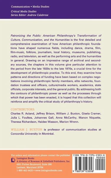 Patronizing the Public is the first detailed and comprehensive examination of how American philanthropy has transformed culture, communication, and the humanities. Drawing on an impressive range of archival and secondary sources, the chapters in the volume shed light on philanthropic foundations have shaped numerous fields, including film, television, radio, journalism, drama, local history, museums, as well as art and the humanities in general.