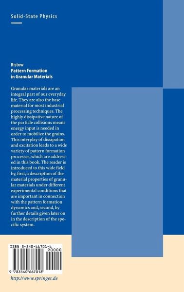 Granular materials are an integral part of our everyday life. They are also the base material for most industrial processing techniques. The highly dissipative nature of the particle collisions means energy input is needed in order to mobilize the grains. This interplay of dissipation and excitation leads to a wide variety of pattern formation processes, which are addressed in this book. The reader is introduced to this wide field by, first, a description of the material properties of granular materials under different experimental conditions that are important in connection with the pattern formation dynamics and, second, by further details given later on in the description of the specific system.