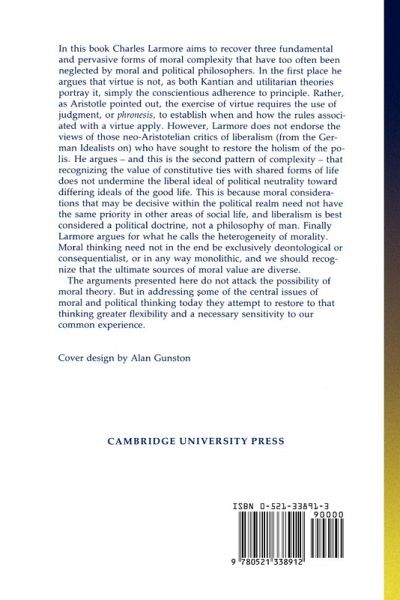 Larmore aims to recover three fundamental and pervasive forms of moral complexity that have too often been neglected by moral and political philosophers. In addressing some of the central issues of moral and political thinking today, Larmore attempts to restore to that thinking greater flexibility and a necessary sensitivity to our common experience.