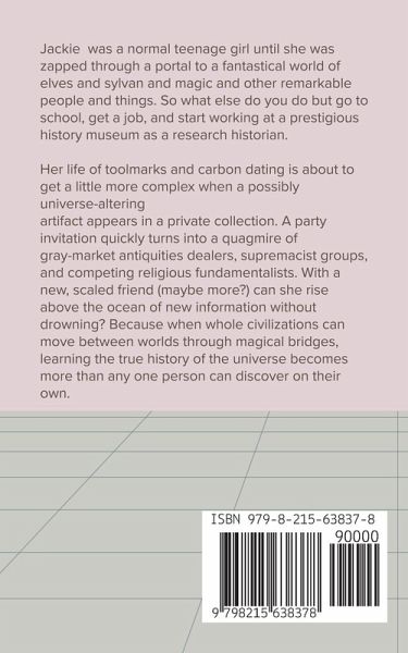 Jackie Hernandez was a normal teenage girl until she was zapped through a portal to a fantastical world of elves and sylvan and magic and other remarkable people and things. And now that she knows what the rest of the universe looks like, she can't go back home. Now she's in her late 20's and working at a museum and is still pretty gosh darn normal. Turns out the existence of magic doesn't preclude civilization, at large, from trundling along through the normal course of technological innovation. Working as a historian in one of the premier research museums on her current planet of residence, Jackie gets to see ancient history of the connected worlds of The District pass in front of her on a daily basis. Her life of toolmarks and carbon dating is about to get a little more complex when a possibly universe-altering artifact appears in a private collection. A party invitation quickly turns into a quagmire of gray-market antiquities dealers, supremacist groups, and competing religious fundamentalists. With a new, scaled friend (maybe more?) can she rise above the ocean of new information without drowning? Because when whole civilizations can move between worlds through magical bridges, learning the true history of the universe becomes more than any one person can discover on their own. First in a series. Roughly 30k words long.