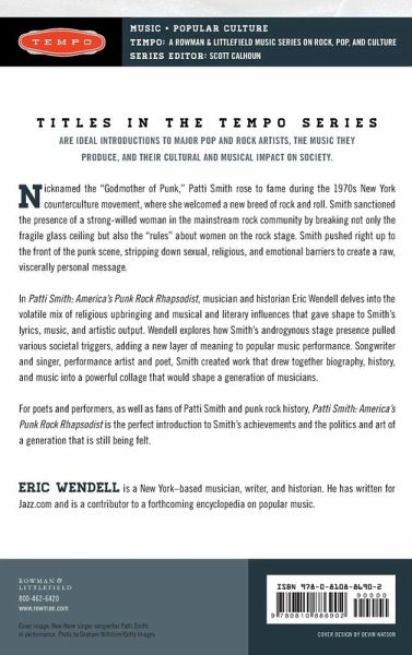 Nicknamed the "Godmother of Punk," Patti Smith rose to fame during the 1970s New York counterculture movement where she welcomed a new breed of rock and roll. Smith sanctioned the presence of a strong-willed woman in the mainstream rock community by breaking not only the fragile glass ceiling, but also the "rules" about women on the rock stage. Smith pushed right up to the front of the punk scene, stripping down sexual, religious, and emotional barriers to create a raw, viscerally personal message. In Patti Smith: America's Punk Rock Rhapsodist, musician and historian Eric Wendell delves into the volatile mix of religious upbringing and musical and literary influences that gave shape to Smith's lyrics, music, and artistic output. Wendell explores how Smith's androgynous stage presence pulled the various societal triggers, adding a new layer of meaning to popular music performance. Songwriter and singer, performance artist and poet, Smith created work that drew together biography, history, and music into a powerful collage of an artist who shaped a generation of musicians. For poets and performers, as well as fans of Patti Smith and punk rock history, Patti Smith: America's Punk Rock Rhapsodist is the perfect introduction to Smith's achievements and the politics and art of a generation that is still felt.