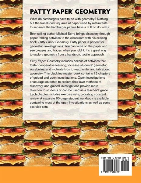 Written by the best selling author of "Discovering Geometry", Patty Paper Geometry contains 12 chapters of guided and open investigations. Open investigations encourage students to explore their own methods of discovery, and guided investigations provide more direction to students. Use Patty Paper Geometry as a supplement to your geometry program or even as a major course of study. Author: Michael Serra, Pages: 262, paperback, Publisher: Playing It Smart, ISBN: 978-1559530723