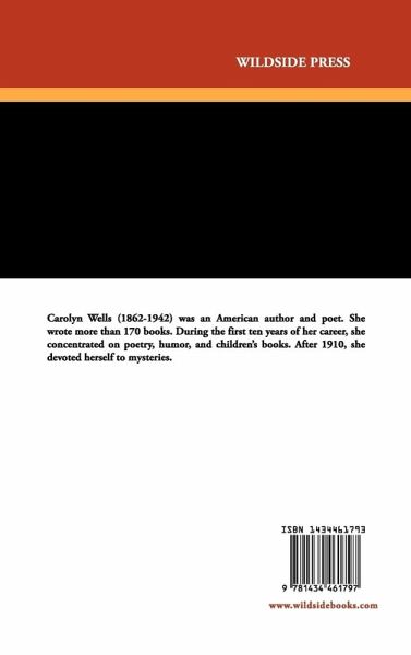Carolyn Wells (1862-1942) was an American author and poet. She wrote more than 170 books. During the first ten years of her career, she concentrated on poetry, humor, and children's books. After 1910, she devoted herself to the mystery genre.