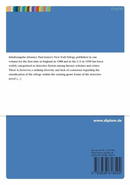 This paper asserts that Paul Auster's NYT can be adequately described as a particular form of postmodern detective fiction that may be defined, or rather 'redefined', as a form which an the one hand still makes use of several well-known variations of the detective novel that have developed during the Jong tradition of the genre, such as the classical and the hard-boiled detective novel; but which, an the other hand are only applied by Auster to deviate from this course, subvert the existing elements and deliberately negate the fundamental purposes of the genre by introducing a great variety of postmodern aspects. In this, Auster follows the tradition of the anti-detective novels by such authors ...