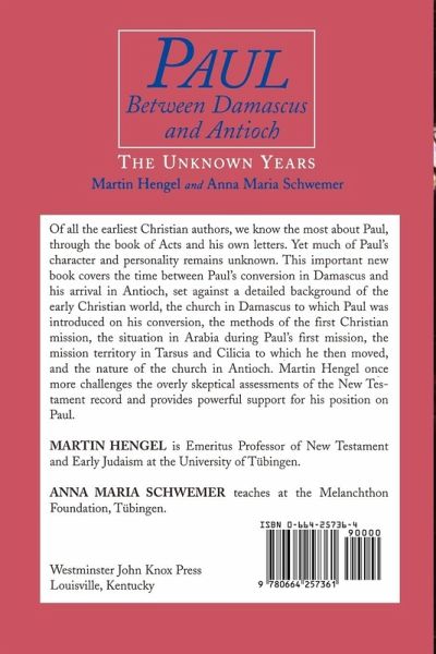 This important new book covers the time between Paul's conversion in Damascus and his arrival in Antioch, set against a detailed background of the early Christian world, the church in Damascus to which Paul was introduced on his conversion, the methods of the first Christian mission, the situation in Arabia during Paul's first mission, the mission territory in Tarsus and Cilicia to which he then moved, and the nature of the church in Antioch. Martin Hengel once more challenges the overly skeptical assessments of the New Testament record and provides powerful support for his position on Paul.