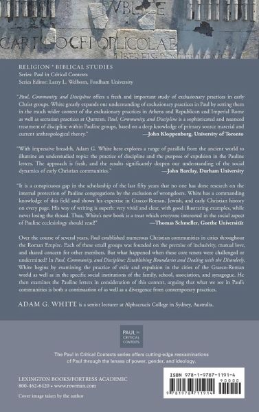 In this book, Adam G. White examines Paul's practice of community discipline in light of similar practices in the broader Graeco-Roman context and argues that what we see in Paul's communities is both similar and unique to contemporary practices.
